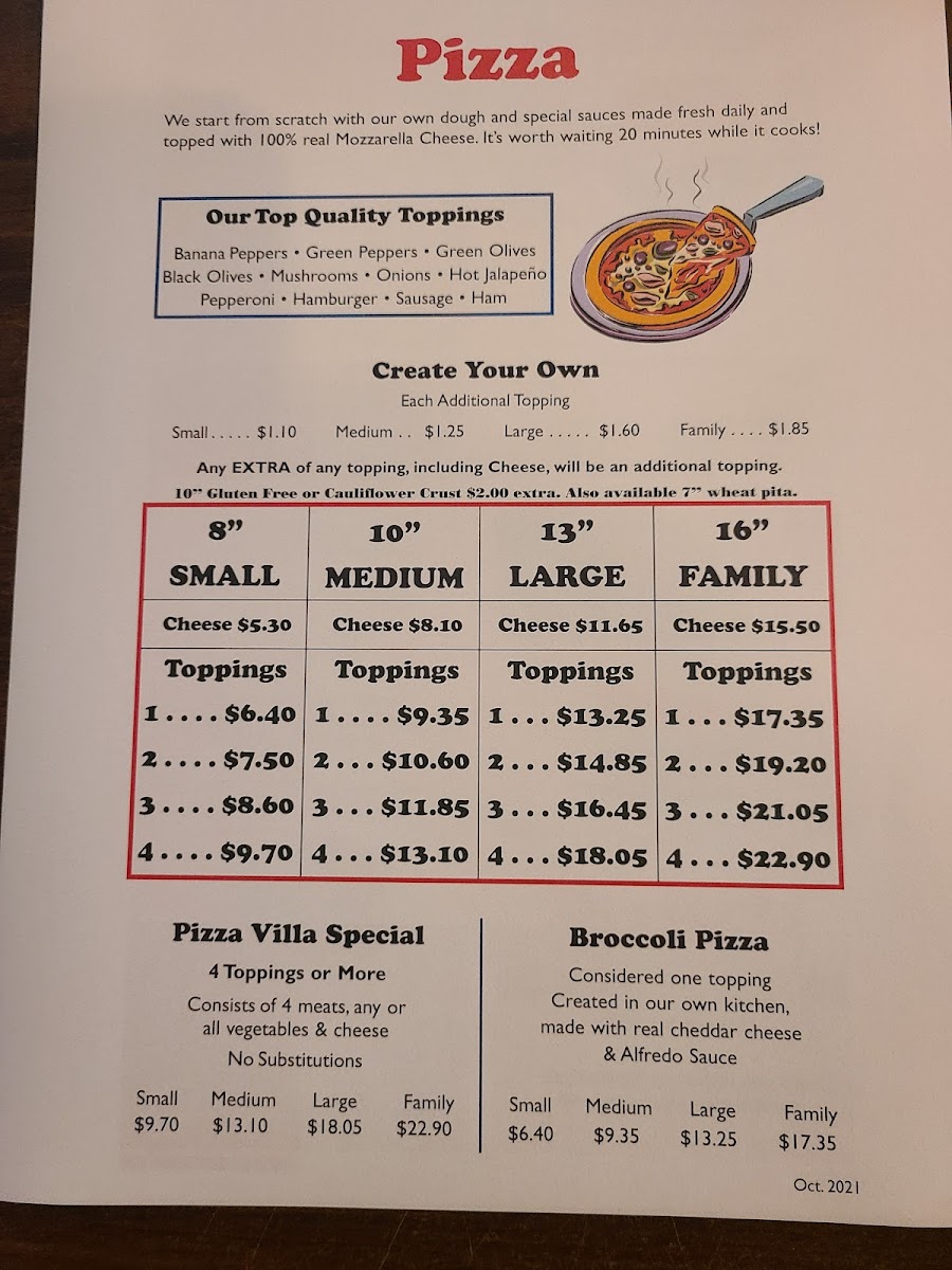 If you’re browsing the Pizza Villa Menu, you’re probably already craving something warm, cheesy, and seriously satisfying. Tucked away at 1400 W Vernon Ave in Kinston, NC, this local favorite keeps things simple but delicious. The first thing you’ll notice is the variety - classic hand-tossed pizzas loaded with gooey mozzarella, hearty specialty pies piled high with toppings, and plenty of ways to customize your own slice just the way you like it.